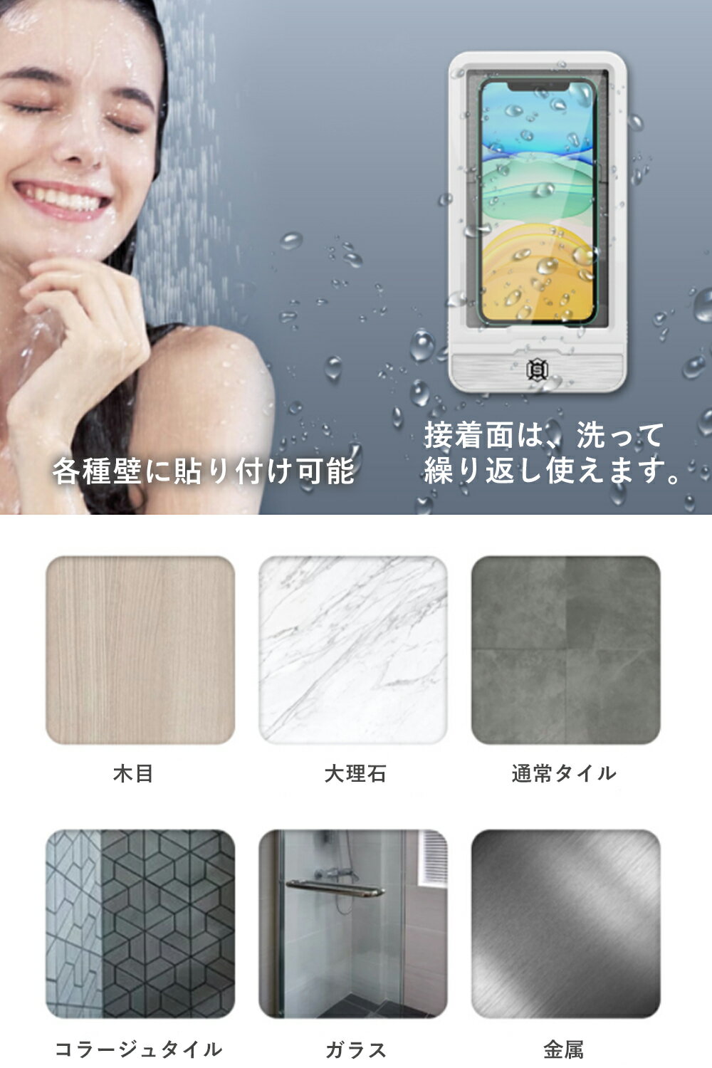 ガラス、木目、タイルなど各種壁に対応。